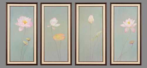 "Lotus Serenity" 4-Panel Decorative Oil Painting Set