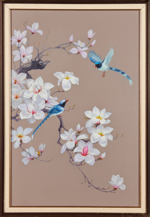 Blush & Azure: Taihu Stone with Bamboo | Original Contemporary Chinese Oil Painting -